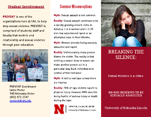Student Involvement PREVENT is one of the organizations here at UNL to help stop sexual violence. PREVENT is comprised of students, staff and faculty that work to end relationship and sexual violence through peer education. PREVENT Coordinator Jamie Porter 340 Nebraska Union (402) 472-2597 prevent@unl.edu