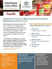 "This has been a rewarding process for the team at Campbell Canada in Toronto. We have been committed to Provision’s food loss + waste reduction challenge for some time and now we have successfully applied the recently developed Toolkit in our own facility." - John Lillard, Research & Development, Campbell Company of Canada