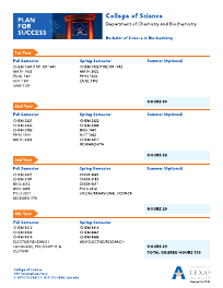 Meet with your advisor and become familiar with requirements for your degree. Meet with Health Professions advisor to discuss requirements for pursing a career in health. Complete lower division prerequisite courses General Chemistry with lab 1 & 2 (1441, 1442 or 1341/1181 & 1342/1182) Organic Chemistry with lab 1 & 2 (2321/2181 & 2322/1182) Quantitative Chemistry with lab