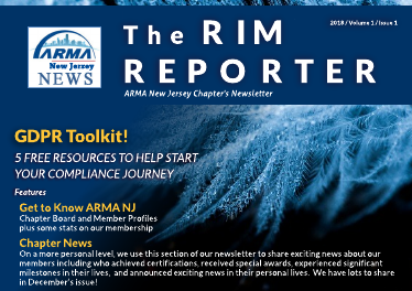 Get to Know ARMA NJ Chapter Board and Member Profiles plus some stats on our membership Chapter News On a more personal level, we use this section of our newsletter to share exciting news about our members including who achieved certifications, received special awards, experienced significant milestones in their lives, and announced exciting news in their personal lives. We have lots to share in December’s issue!