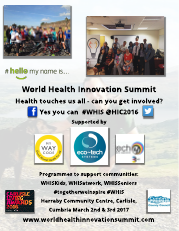 Programmes to support communities: WHISKids, WHISatwork, WHISSeniors #togetherweinspire #WHIS Harraby Community Centre, Carlisle, Cumbria March 2nd & 3rd 2017 www.worldhealthinnovationsummit.com