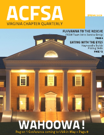 Hope everyone is enjoying the change in weather… Finally! This is the time of year where you need to be finalizing you plans for the Region 1 Conference and also making sure you are getting all of your paperwork together for the National Conference this year in Memphis. This is going to be a big year for the ACFSA since we will be celebrating our 50th Year Anniversary! Hope to see you in my beautiful city of Charlottesville next month!