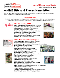 2024 endMS Summer School participants Seid Mussa Ahmed, University of British Columbia Jennifer Auvergnon Université de Montréal Hamidreza Barzegarpoor, Memorial University of Newfoundland Nesrine Belhamiti, Université Laval Hannah Bernstein, McGill University Erin Evans, University of British Columbia Sahar Farhangi, University of British Columbia Hande Halilibrahimoglu, McGill University Mada Hashem, University of Calgary Sydney Hillier, Memorial University of Newfoundland Vina Li, Queen's University at Kingston Julia Ludgate, University of Ottawa Daniel Morelli, University of Western Ontario Aidan Peters, University of Ottawa Atefeh Rayatpour, University of Calgary Marta Ruiz-Algueró, University of British Columbia Mira Safa, University of Manitoba Tayma Shaaban, Centre Hospitalier de l'Université de Montréal Katie Souter, University of Alberta Doriana Taccardi, Queen's University Cassandra Thompson, Memorial University of Newfoundland Henry Wang, Governors of the University of Alberta