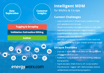 Current Challenges Large investments in infrastructure needed; Storage and capacity do not not scale Siloed functionality only supports meter-to-cash cycle; separate projects required to support analytics Established MDMS vendors struggle to support hardware from other vendors Difficulty in combining the time series with relational data limits the ability to gain relevant and timely insight Unique Features Scale up or down in seconds. Only use what you need and pay for what you use Production ready in weeks. API first strategy. Industry best practices Ingest any data. Smart meters, IoT, social, weather Any timeseries - tagged with relational data cleaned, validated and estimated during ingestion