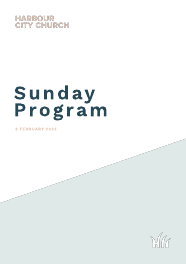 KEEP IN TOUCH Find us online for regular posts, reflections and to get to know us a little better via our Facebook, Instagram and website. Facebook: @harbourcitychurch Instagram: @hcc_syd www.harbourcitychurch.com