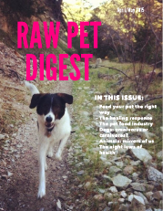 We all love our pets. Without question, that is a fact. They share our homes, our lives, and our hearts. And all of us want the very best for them. We want them to have the greatest quality of life and, of course, the longest life possible. But sometimes it can get a little confusing to figure out how to achieve this. And so, I started Raw Pet Digest with one simple goal: to help empower you with the knowledge and information you need to give your pets the highest quality and longest life possible. This magazine aims to provide you with clear, concise information about how to feed your dog or cat what they need to thrive, how to help them feel their best naturally, and how to support them in maintaining optimal health of mind, soundness of body, and fulfillment of spirit. In each issue, we will strive to bring you valuable information ranging from (among other things) nutrition, to herbs and essential oils, to stories about the mind/body/spirit connection and the role it plays in health. Raw Pet Digest aims to deliver clear explanations for all of the facts presented within. And through your letters and comments, it will offer you a chance to participate in the journey of the magazine. If you have a particular topic you would like to see covered, let us know! It may show up in a future issue, and we may thank you in writing for participating in the direction of the magazine. If you want more information on something we covered inside, tell us! We want this to be a magazine that gives you the facts and information you need to help your dog or cat have a happy, fulfilling life. This inaugural issue of Raw Pet Digest focuses a lot on other kinds of "starts": starting your pet on a species-appropriate raw food diet, why it's important to do so, starting down the path of natural health care, and so on. Later issues will dive more deeply into other topics of interest to you, such as flea and tick prevention, interviews with raw food experts, specific information on various diseases, etc. But for now, whether you've been feeding raw for a long time or have yet to make the switch, welcome! I hope you will find valuable information in these pages. This is a labor of love, and I am so glad you are part of it. Thank you for reading! Kristin Clark Editor-in-Chief kristin@rawpetdigest.com